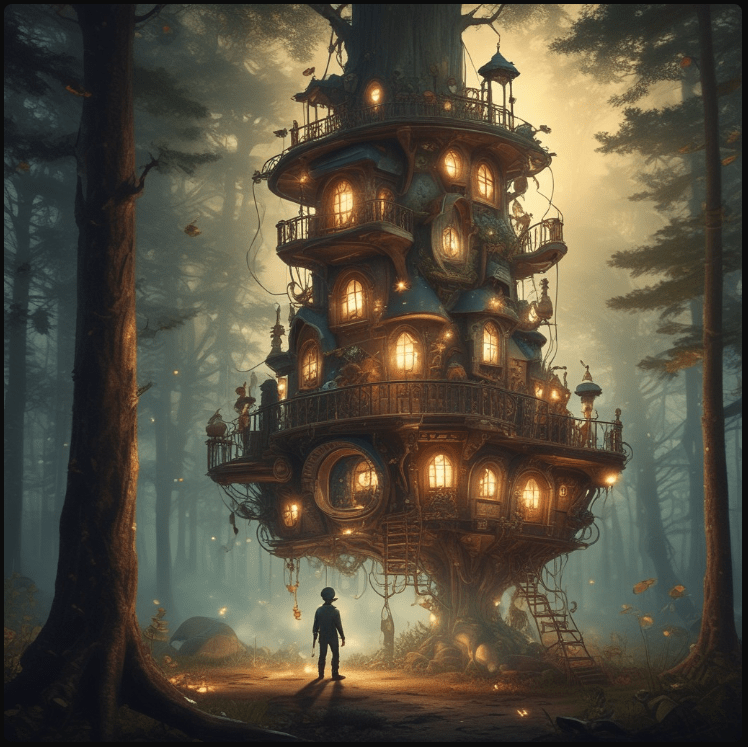 With a determined nod, Leo set off, following the shimmering trail of fireflies. The deeper he ventured, the more enchanting the forest became. The trees whispered secrets, and the mushrooms glowed brighter, illuminating his way.